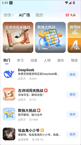 快问AI app是作业帮又一ai布局新产品,它依托前沿AI技术打造的中文学习智能助手,专为满足用户在日常学习生活中的多样化需求而设计。快问AI app拥有强大的语言理解能力,能精准捕捉用户提出的各类问题或需求,并依托先进算法迅速生成精准答案。更值得一提的是,快问AI具备自主学习能力,会随使用频率增加而不断优化,为用户带来愈发贴合个人习惯的个性化体验。可以说快问AI app既是知识渊博的百科全书,能解答各学科难题,又是耐心细致的指导老师,提供智能解题、中英互译、作文指导等专业服务。同时它还是趣味十足的学习伙伴,不仅陪你谈天说地、分享笑话故事,还有很多益智游戏供大家免费游玩,让学习不再枯燥,有需要的用户可以在本站免费下载使用。