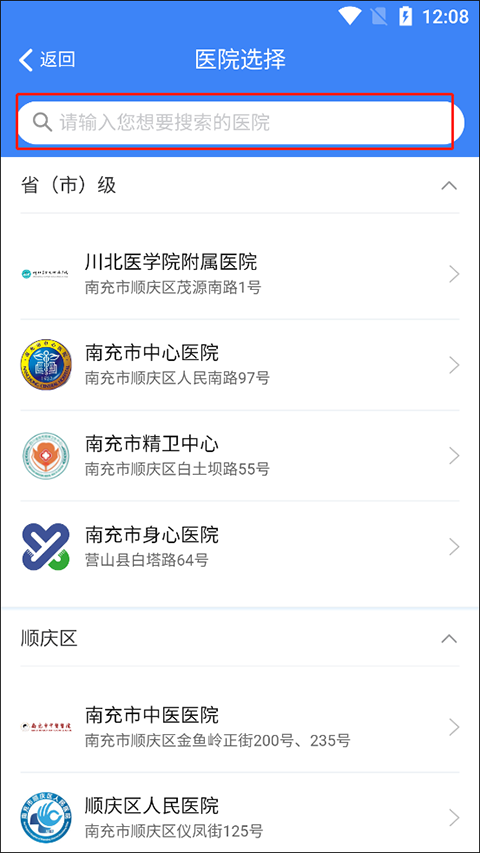 2、然后在这里输入自己想要搜索的医院。