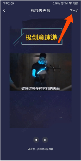 3、视频去除声音的操作十分简单,无需任何操作,点击“下一步”即可进入去除声音视频效果预览页面;