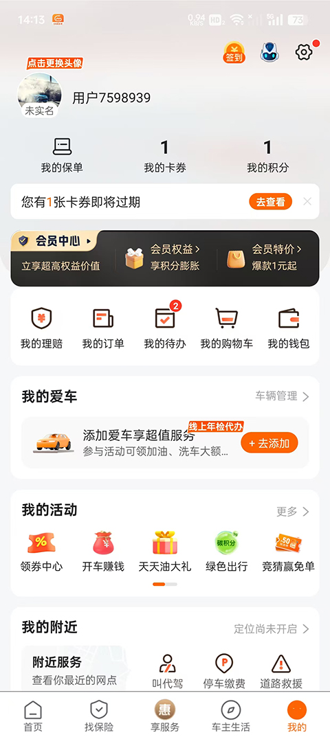 3、享服务界面需要用户先绑定爱车,在来接受一系列的服务;