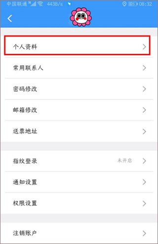 2、点击【个人资料】;