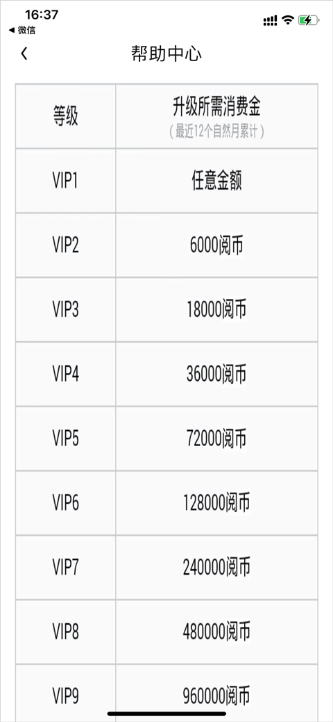 不同等级所对应的升级所需消费金额: