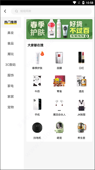 3、应用上的商品覆盖潮流服饰、美妆个护、休闲食品、家居生活、潮玩潮物、宠物用品等多个品类,SKU超1万。