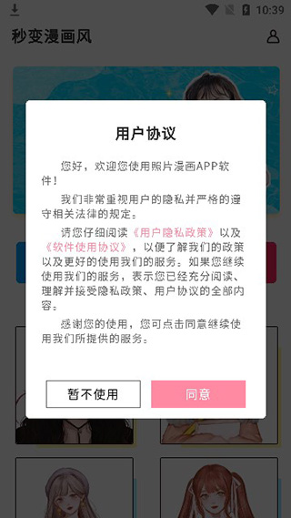 1、下载本站提供的照片漫画化app,首次使用需要阅读用户协议并同意;