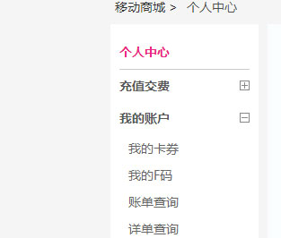 2、进入个人中心,在左边的导航栏中,点开“我的账户”,找到“详单查询”。