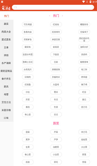 3、查看app提供的菜谱分类标签,选择对应的标签也可以快速找到菜谱;