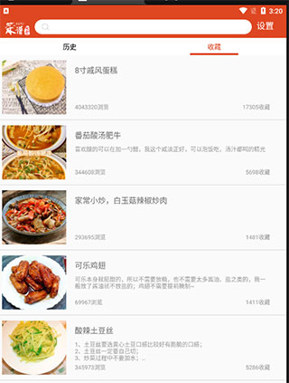 保留你的搜索记录,喜欢的菜谱都可以添加到收藏之中。
