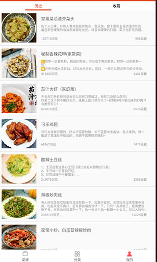 7、贴心的浏览记录,看过的菜谱都在这里,方便你下次浏览!
