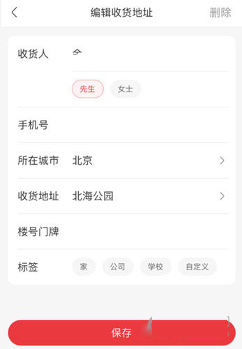 2、接着在“收货地址”界面选择一个地址,并点击右侧的“书写”按钮。