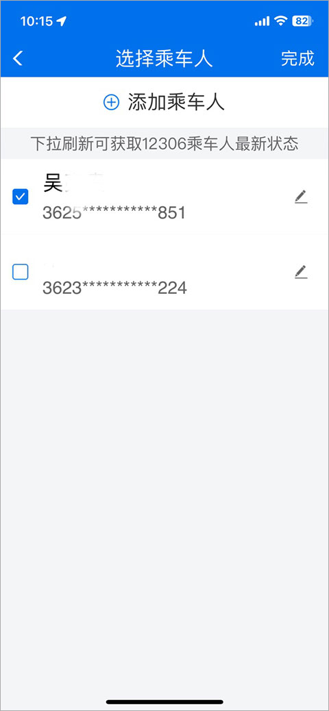 进入这个页面后可以查看到车票的价格,确认无误后点击下方选择乘车人。