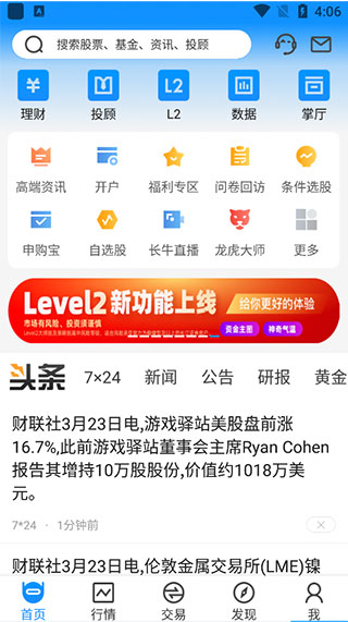 4、丰富的投资资讯:金牌投资顾问实时服务、每日龙虎榜、大宗交易、第一手交易信息,投资圈内应有尽有