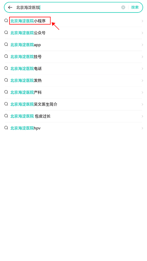 2、搜索要去就诊的医院,或是滑动屏幕找到就诊医院,点击该医院。