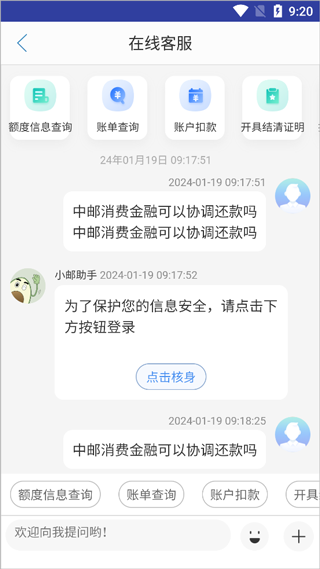用户在逾期第一天该平台将发送逾期短信提醒及时还款,并开始计算逾期天数。用户此时可以通过app内在线客服页面中直接输入“中邮消费金融可以协调还款吗”文本并发送给客服