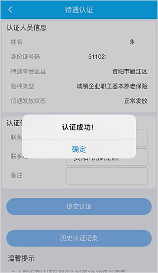 8、显示认证成功,可在下方查询历史认证记录