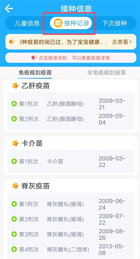 2、在界面中点击接种记录就能够看到详细的情况了。