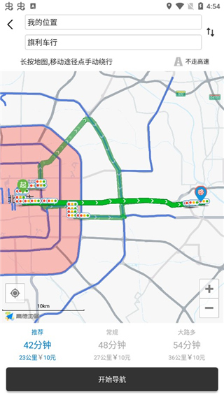 4、导航会按照设置的路线引导,这就是手动设置途径点,绕行限行区的全部操作流程。