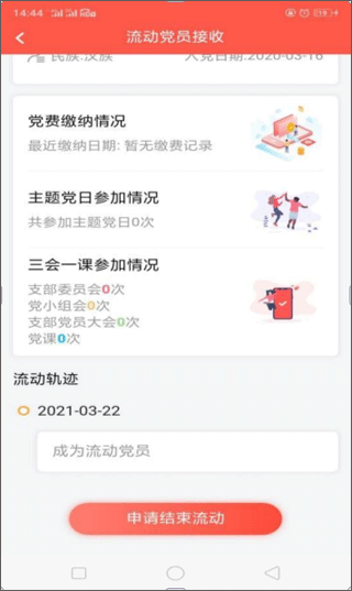 审核过流动党员记录,普通党员可以点击申请记录查看自己提交的申请记录。