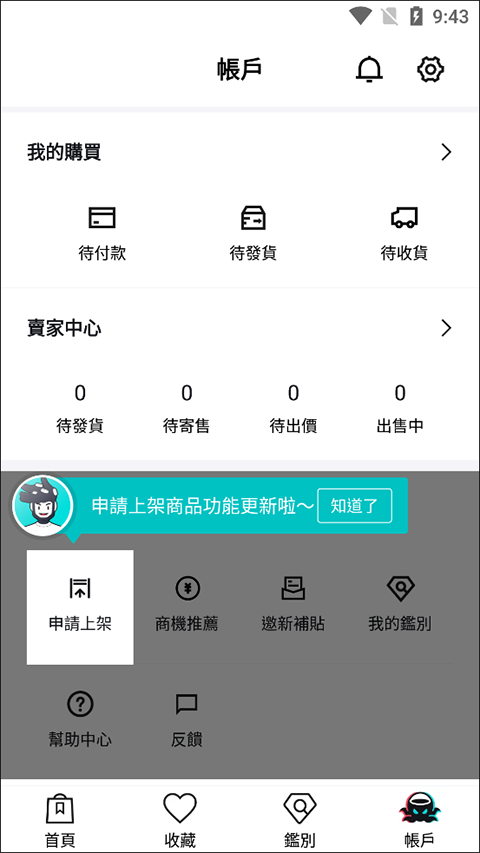 2、在“账号”页面中,点击“申请上架”选项。