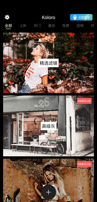 1、超过上千款风格滤镜,成为你的大片工厂;