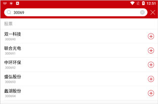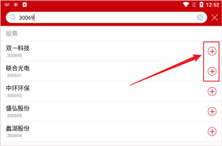 4、再点击搜索出来股票后面的+。