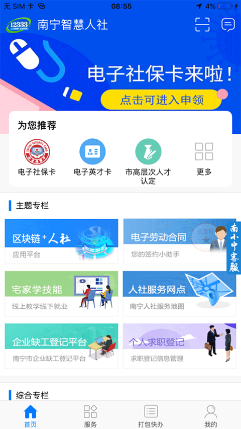 南宁智慧人社app是一款南宁市人力资源和社会保障局为广大市民打造的惠民服务平台,为参保用户提供信息査询、政策音询、社保服务网点査询、账户信息查询、社保费测算、信息提醒等服务。其中信息査询包括可个人参保信息、社保缴费信息、医保卡状态、医疗保险个人张户、医疗保险个人账户消费明细等,而退休人员除了可以査询这些信息外,还可査询养老退休调待明细、养老退休发放明细。另外,南宁智慧人社还有预约门诊服务,该服务形成统一挂号平台,整合了城市中重点医院的预约挂号资源,让用户在预约门诊服务的时候更加便捷取号,也让用户就医的时候更加方便。同时为了提高用户的办事效率,软件还会自动推送提示信息,只为让用户在线轻松办事。ps:本次小编为大家带来的是南宁智慧人社app官方下载最新版安卓版,软件会实时公布最新政策法规,让用户可以在线上了解与社保相关的政策信息,而且常见问题的解决方案都可以在里面直接查看,让用户更快速的掌握事情处理方案。