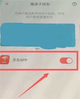 4、推送子钱包界面,点击“京东APP”滑动按钮开启。