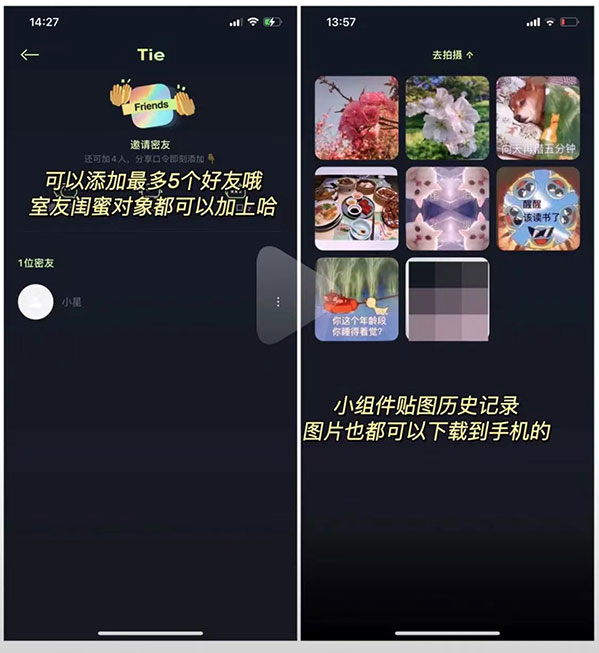 3、贴贴最多能够添加5个好友哦,贴的历史屏幕照片也可以查看