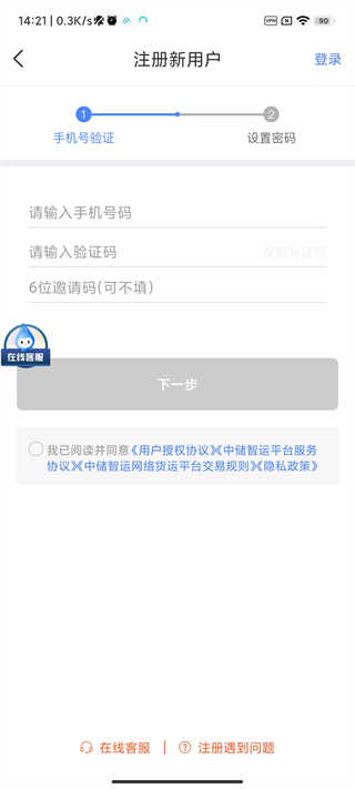 4、输入您的手机号码,点击[发送验证码]并输入正确的验证码,点击按钮[下一步];