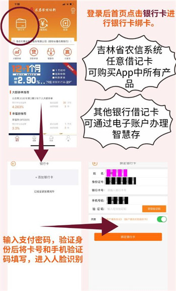 3、登录后首页点击银行卡进行银行卡绑卡,输入支付密码,验证身份后将卡号和手机验证码填写,进入人脸识别。