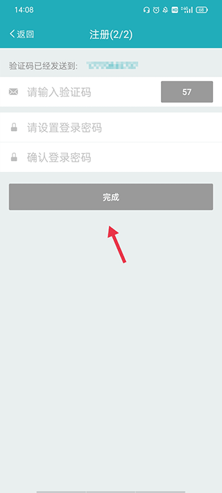 3、输入验证码,设置一个自己记得住的密码,点击完成。