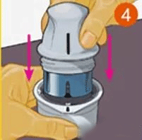 2、将助针器与探头相链接,两者包装上都有一条指示线,对其位置之后,垂直按压。