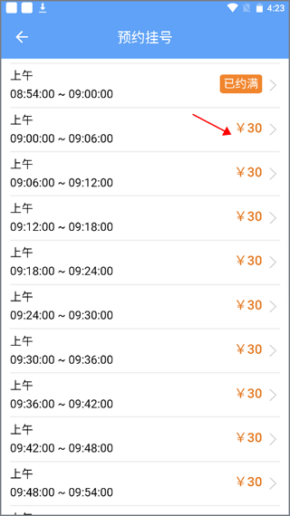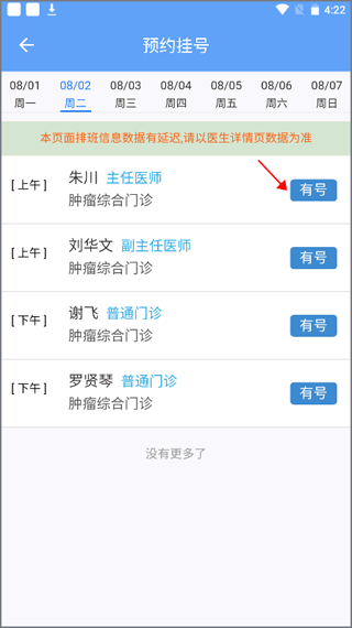 5、进入到医生的排班时间,要先确认医生什么时候可以问诊,选择一个医生在的时间。
