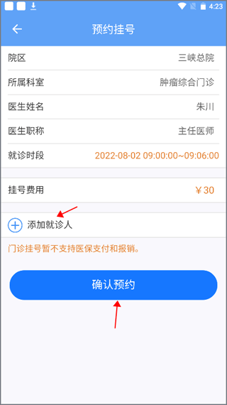 6、最后就是添加要挂号的就诊人,点击“确认预约”就好了。