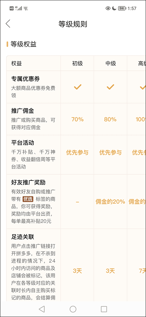 团长只要通过分享平台上的商品就能赚取一定的佣金。但在多多团长平台上,如果用户等级越高那么能获得的佣金比例就会越高。