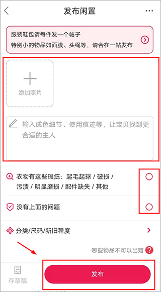 (2)隐瞒瑕疵:发布出赠衣物前仔细检查瑕疵情况,更不要故意隐瞒瑕疵;