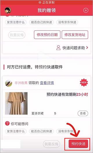6、预约快递进行发货,发货完成,等待对方收货,您的出赠闲置就已成功了!