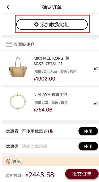4、请按要求填写收货人信息,提供有效姓名、手机号码、收货地址及常用邮箱。如果您提交的是“欧洲极速仓”的商品,请按要求进行身份验证,请务必填写付款人的真实姓名和身份证号码;
