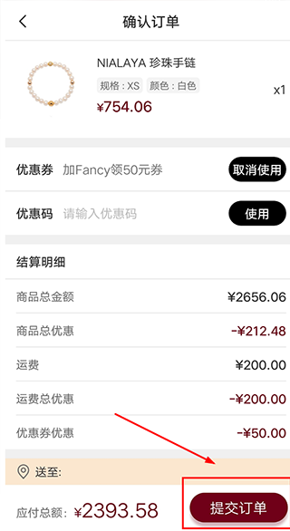 5、如果您有优惠券/优惠码,可以在提交订单前选择使用已有“商品/运费优惠券”或是填写“优惠码”,每个订单只能使用一张优惠券或者优惠码。
