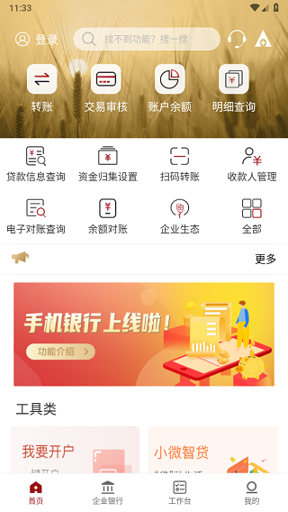 3、农发企业银行,随时随地为您包括账户管理、转账汇款、资金管理、企业生态等优质服务,