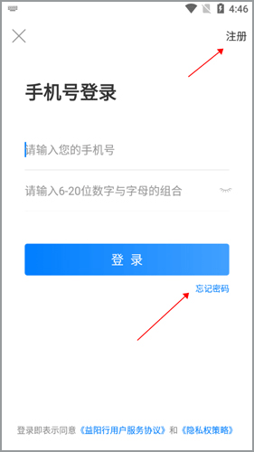 3、若是登录不了非常可能是密码错误,可以选择下方的忘记密码,同时也可以重新注册一下