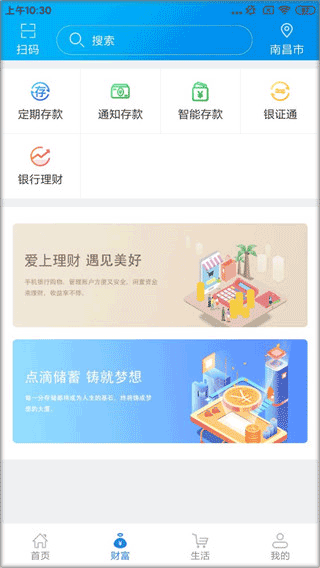 4、在“财富”栏中,你还可以选择如定期存款、智能存款、银行理财等来正确管理你的资金。