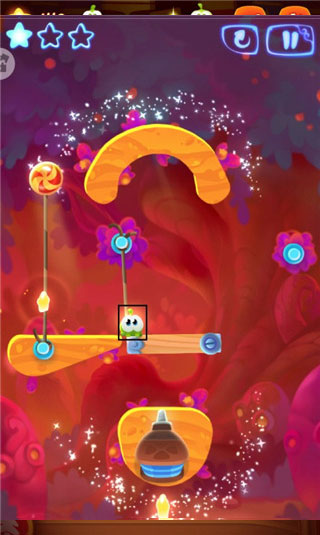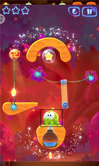 而玩法上,割绳子2手游继承了前作足够简单的玩法,依旧只需用手指轻轻一划,玩家可以根据每个关卡中障碍物的设置,选择划断绳子与使用辅助道具的时机,成功拿到3个星,当然还有最重要最好吃的糖果,不过如果不把糖果送进小怪物口中是不能过关的哦。