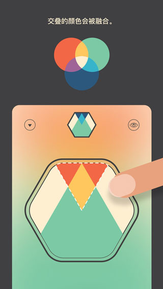 Colorcube ios版是Next Apps BVBA旗下全新推出的一款休闲解谜手游,中文名称叫做色彩立方,游戏界面由清晰简洁的背景色和几个六边形组成,在这里玩家将需要选择用于解谜的色转,通过转动、重叠等特殊方式,以达到与上方同样的形状、颜色及位置摆放,期间下方小型六边形块的提示也将是你解谜过程中重要关键所在。整洁清新的画面设计,无时间限制的游戏进程,上百个趣味的关卡设计,搭配上柔和治愈型背景音乐,给人一种非常不错的休闲解谜游戏体验。