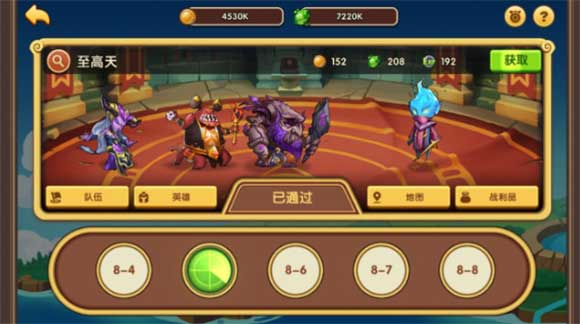 在挂机过程中,除了资源外,还会有一定几率掉落稀有的战利品哦,包括装备、英雄碎片、神器碎片、各类材料和一些特殊的道具哦,战利品是有概率掉落的,只要你人品够好,强力的英雄、高阶的装备和神器就都是你的了。