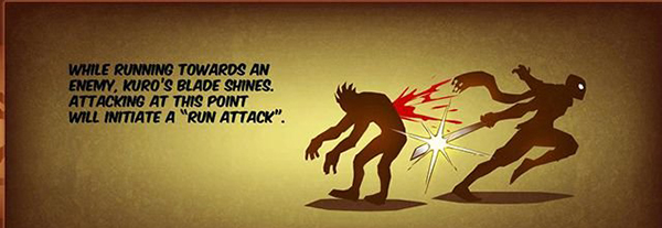 当主角跑向敌人时,会有短暂的时间忍者刀会闪光,这时攻击会触发移动攻击效果,攻击力更强,上面提到的对付铁拳就是用这招