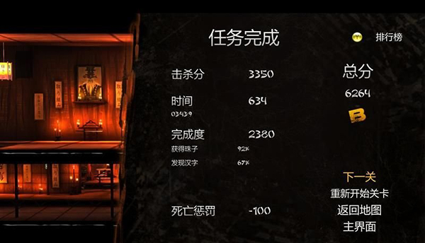 通关评价取决于收集黑字、珠子,还有杀死敌人以及所用时间