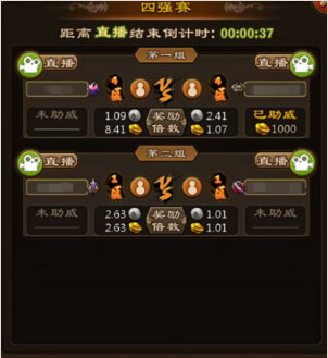 助威结束后,大侠们可以点击【直播】按钮查看刚刚每一轮的比武录像来查看比武结果。