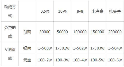 VIP助威的元宝和银两上限和VIP等级相挂钩,大侠们可以根据自身VIP等级进行助威。