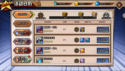 打开活动界面后,选择左边相应活动按钮即可参与在右边显示的相应活动