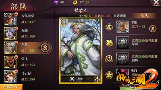 在《啪啪三国2》中,玩家需要消耗铜币和魂石对想要培养的武将进行升级。升级后,武将的武力、智力、兵力会随之提升。当武将等级达到15级的时候会开启先锋、侍女的武将位;25级时,将会开启军师的武将位;35级时开启副将的武将位。在相应的武将位放入武将的话,可以对应加成该武将的武力、智力、兵力、士气四大属性。